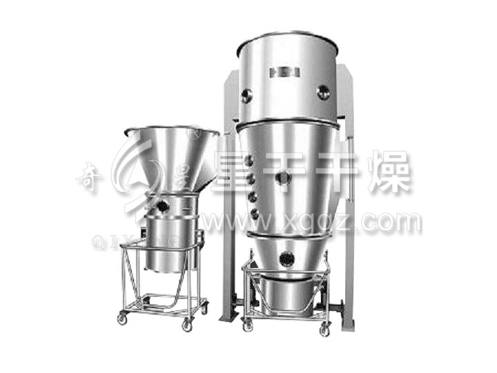 FG系列立式沸騰制粒干燥機(jī)的原理是物料粉末粒子,在原料容器(流化床)中呈環(huán)形流化狀態(tài),受到經(jīng)過(guò)凈化后的加熱空氣預(yù)熱和混合,將粘合劑溶液霧化噴入,使若干粒子聚集成含有粘合劑的團(tuán)粒,由于熱空氣對(duì)物料的不斷干燥,使團(tuán)粒中水分蒸發(fā),粘合劑凝固,此過(guò)程不斷重復(fù)進(jìn)行,形成理想的、均勻的多微孔球狀顆粒。