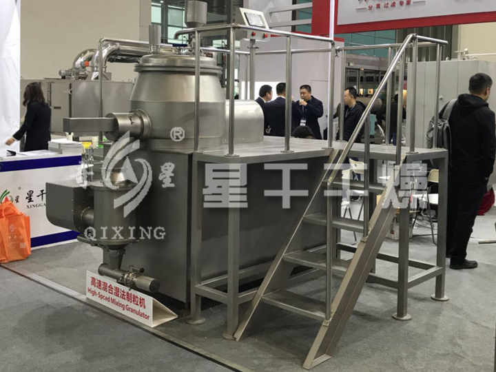 粉體物料與粘結(jié)劑在圓筒形(錐形)容器中,由底部混合漿充分混合成濕潤軟材,然后由側(cè)置的高速粉碎漿切割成均勻的濕顆粒。